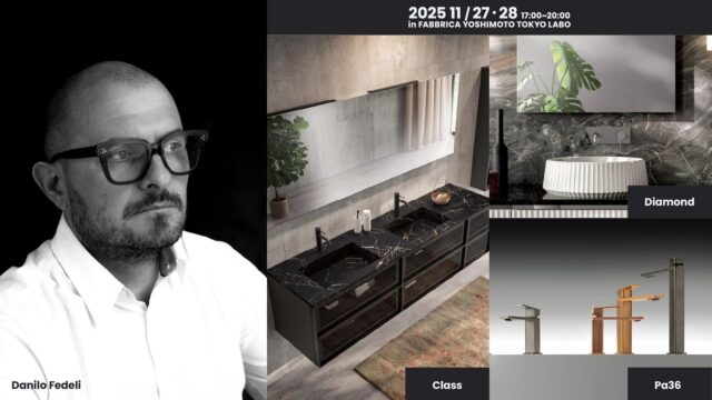 今回のセミナーでは、Fedeli氏のGB groupプロジェクトの舞台裏やデザイン哲学、空間を豊かにする発想について語ります。