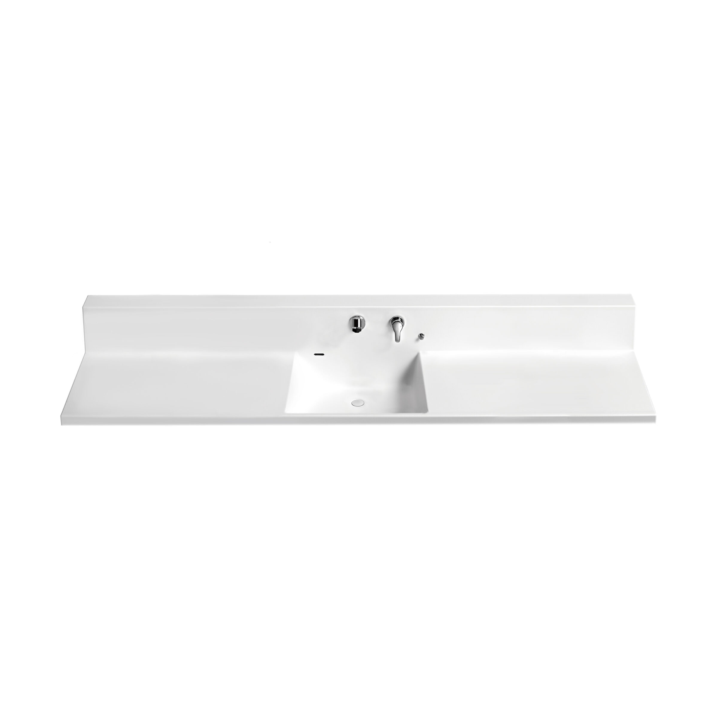 新作のハイバック洗面ボウル一体型カウンターSIERRAは、最大2400mmの間口に対応し、従来のDHより600mm広いサイズでゆとりある使い心地を実現します。
